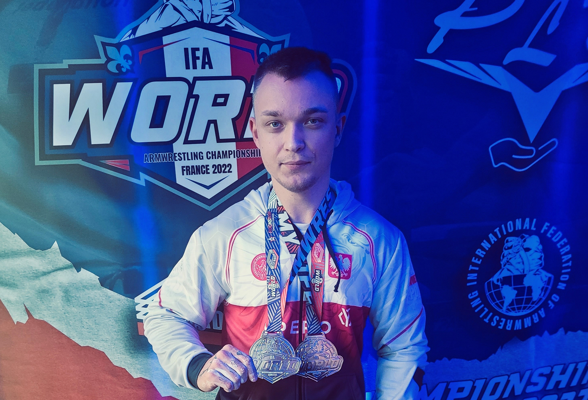 Reprezentant Polski i zawodnik UKS Wilki Międzychód Dawid Łapa zdobył dwa tytuły wicemistrza świata na Mistrzostwach Świata IFA w Armwrestlingu, które odbyły się we francuskim Dieppe w dniach 26.09 – 02.10.2022.
