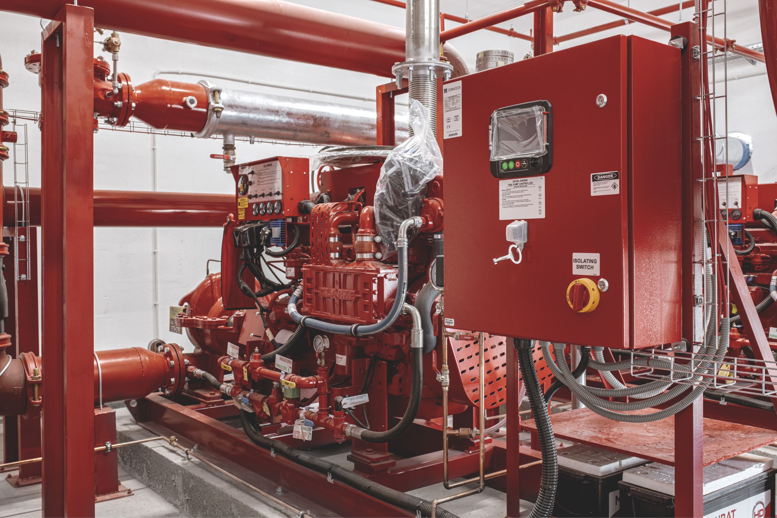 Instalacja tryskaczowa z pompownią; instalacja ogrzewania promiennikami.