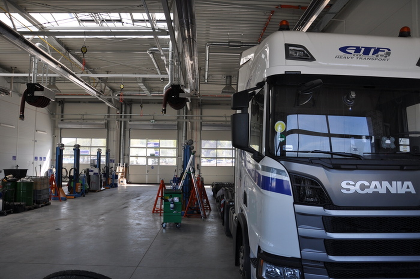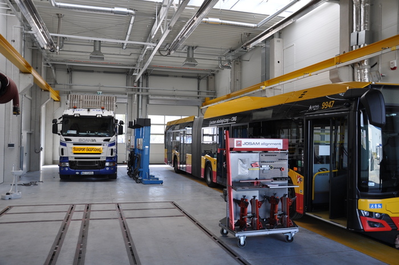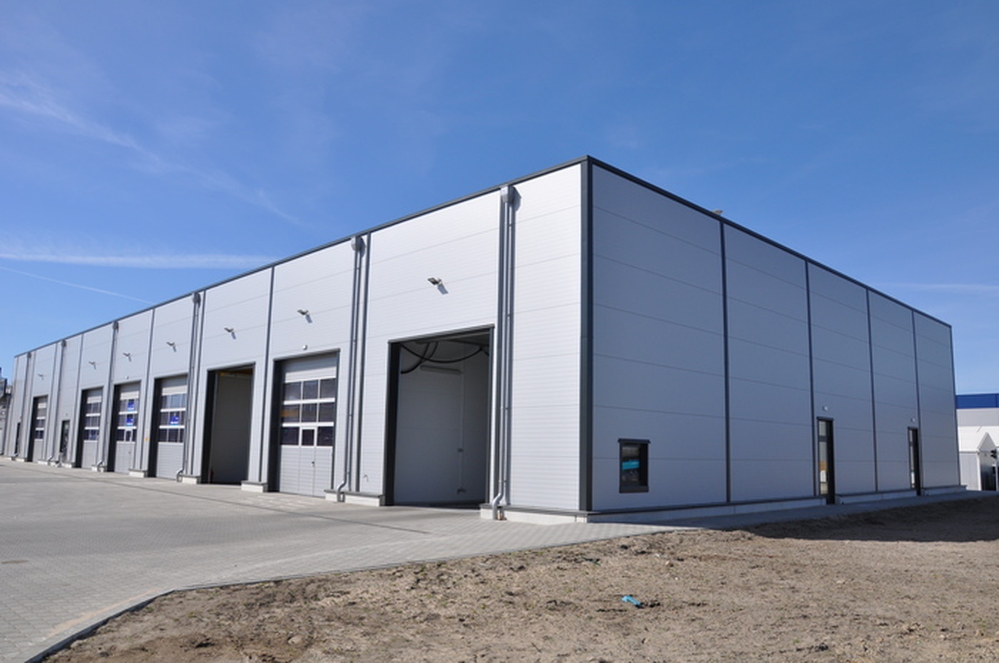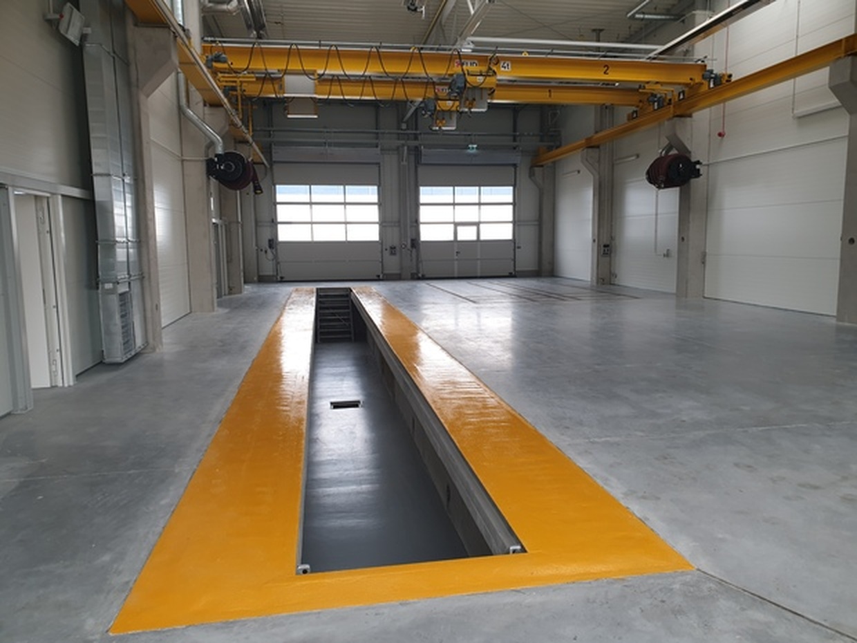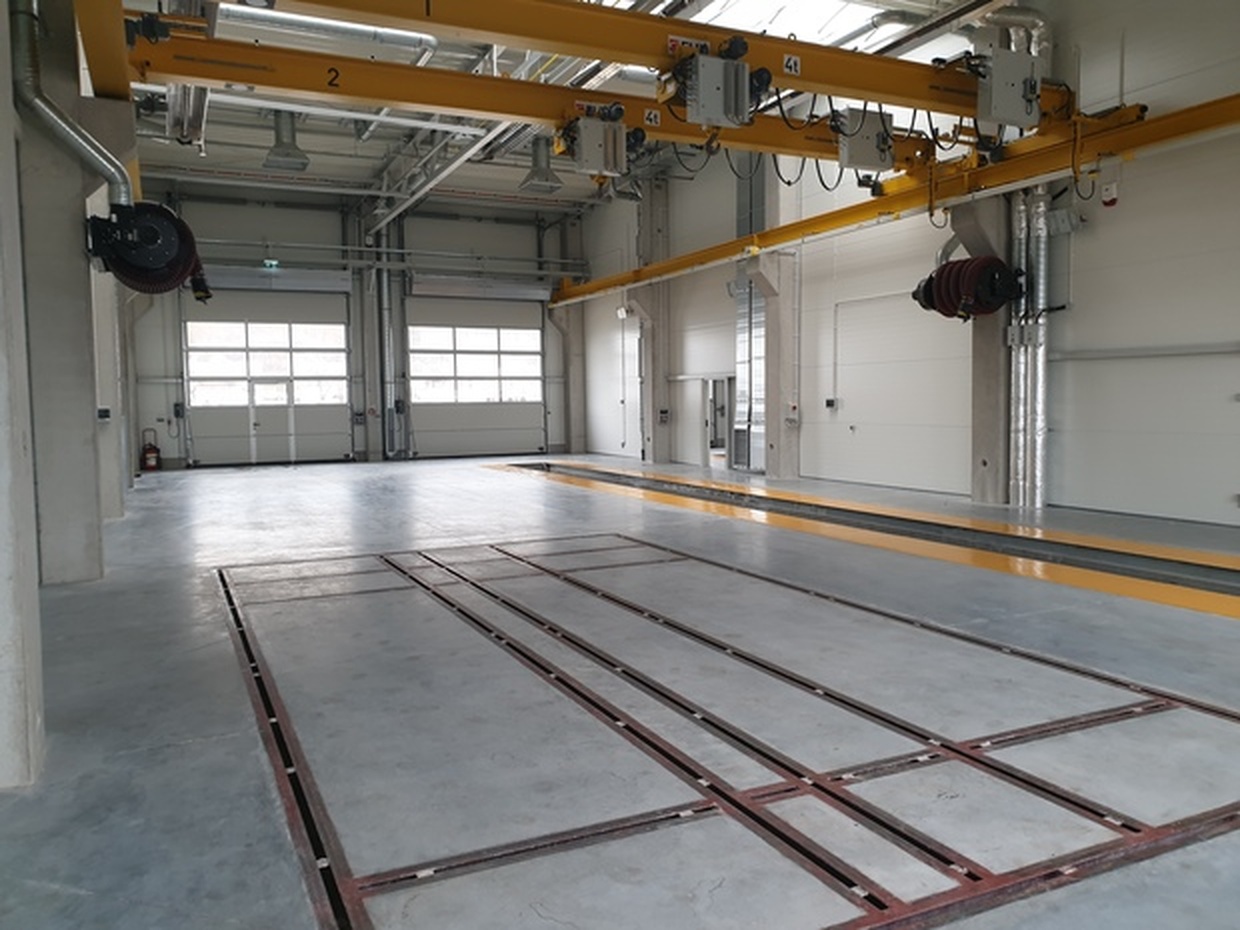 Budowa nowej hali serwisowej pełniącej funkcję centrum przeglądów okresowych, myjni i napraw samochodów ciężarowych i autobusów.
